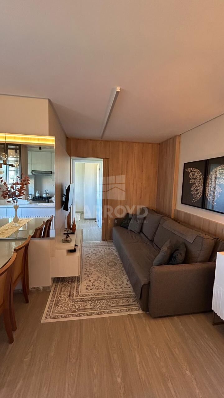 No Residencial Ilha de Creta, este apartamento pronto para morar entrega um ambiente organizado para a rotina de uma família que busca praticidade no dia a dia. A integração entre estar e jantar, o painel com acabamento amadeirado, o espelho ampliando a área social e a iluminação decorativa reforçam uma composição acolhedora e funcional.