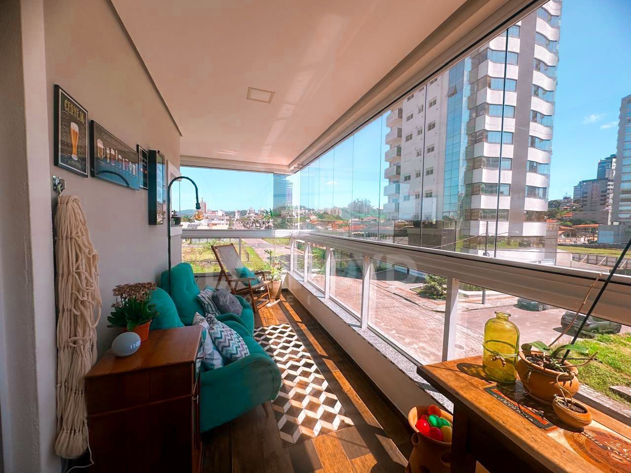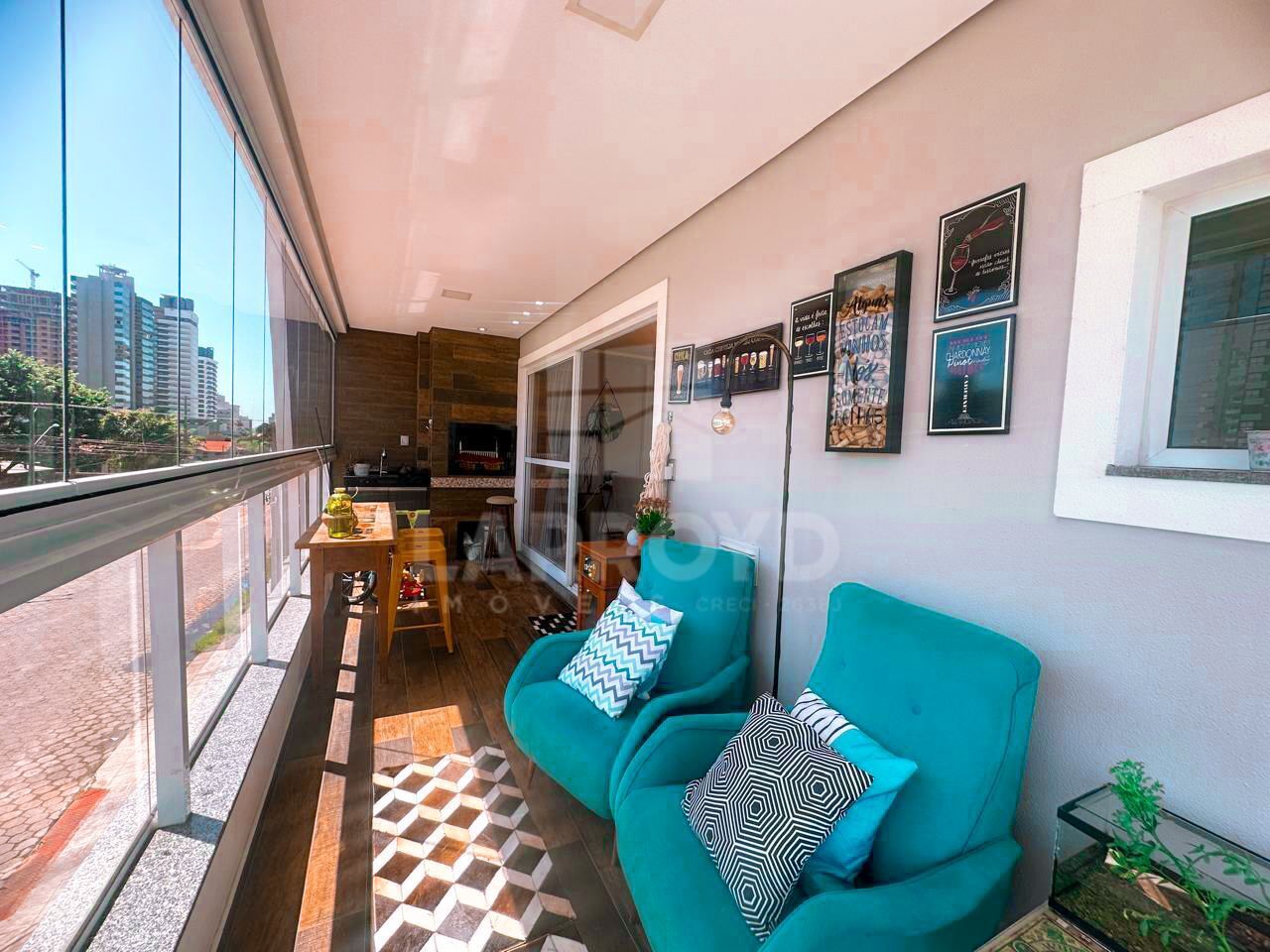 Apartamento, SEMIMOBILIADO, contendo 3 dormitórios, sendo 1 suíte, sala de estar/jantar e cozinha integradas, ampla sacada de esquina com churrasqueira, com vista para o pôr do sol, banheiro social, área de serviço e 2 vagas de garagem.