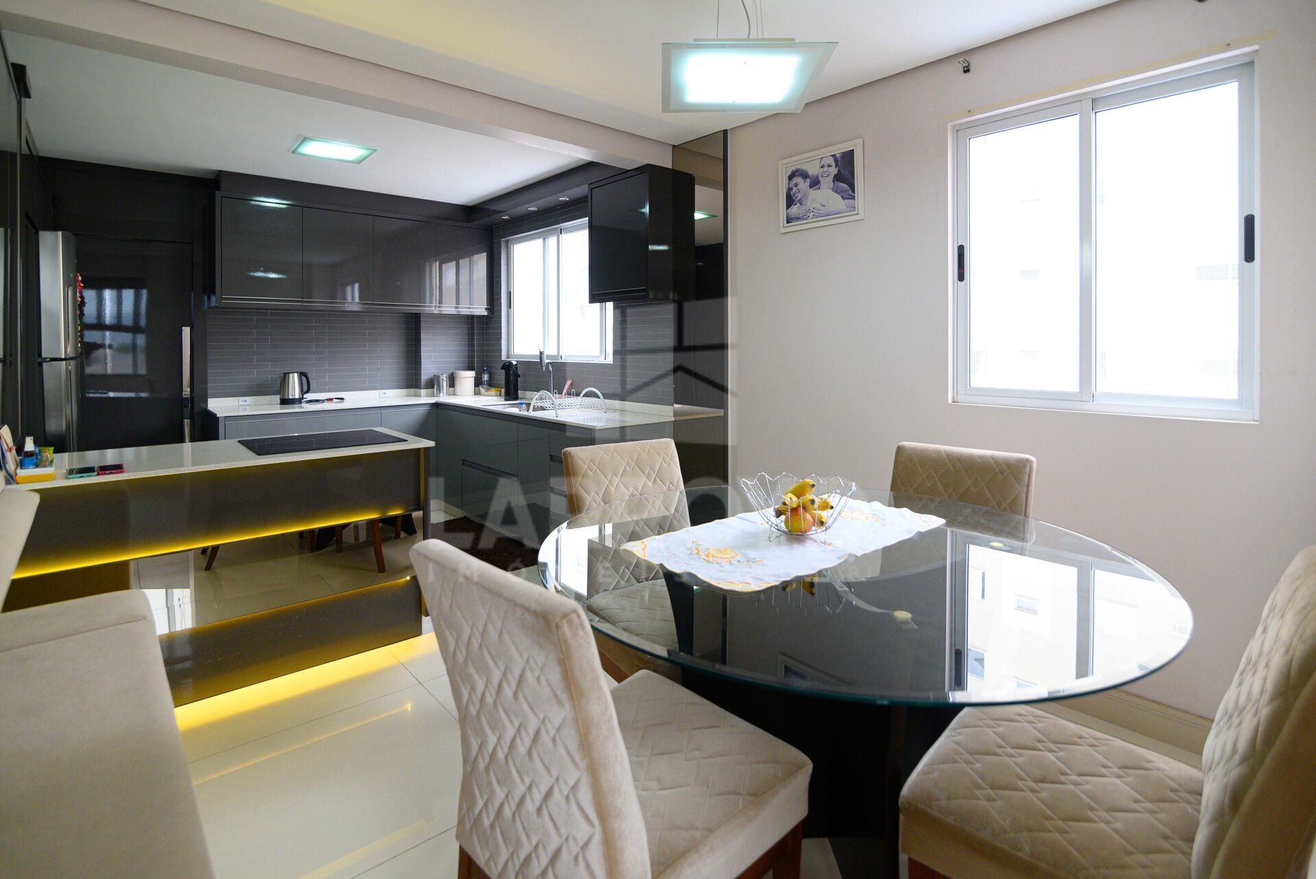 No Residencial Elisa, este apartamento reúne sala e cozinha no mesmo ambiente e se conecta à sacada com churrasqueira — um espaço prático para receber em casa, sem perder a rotina.