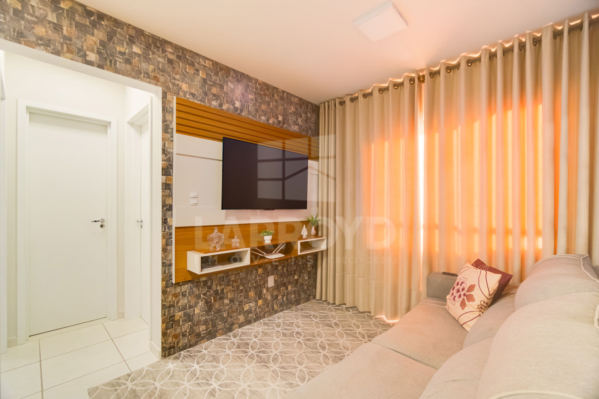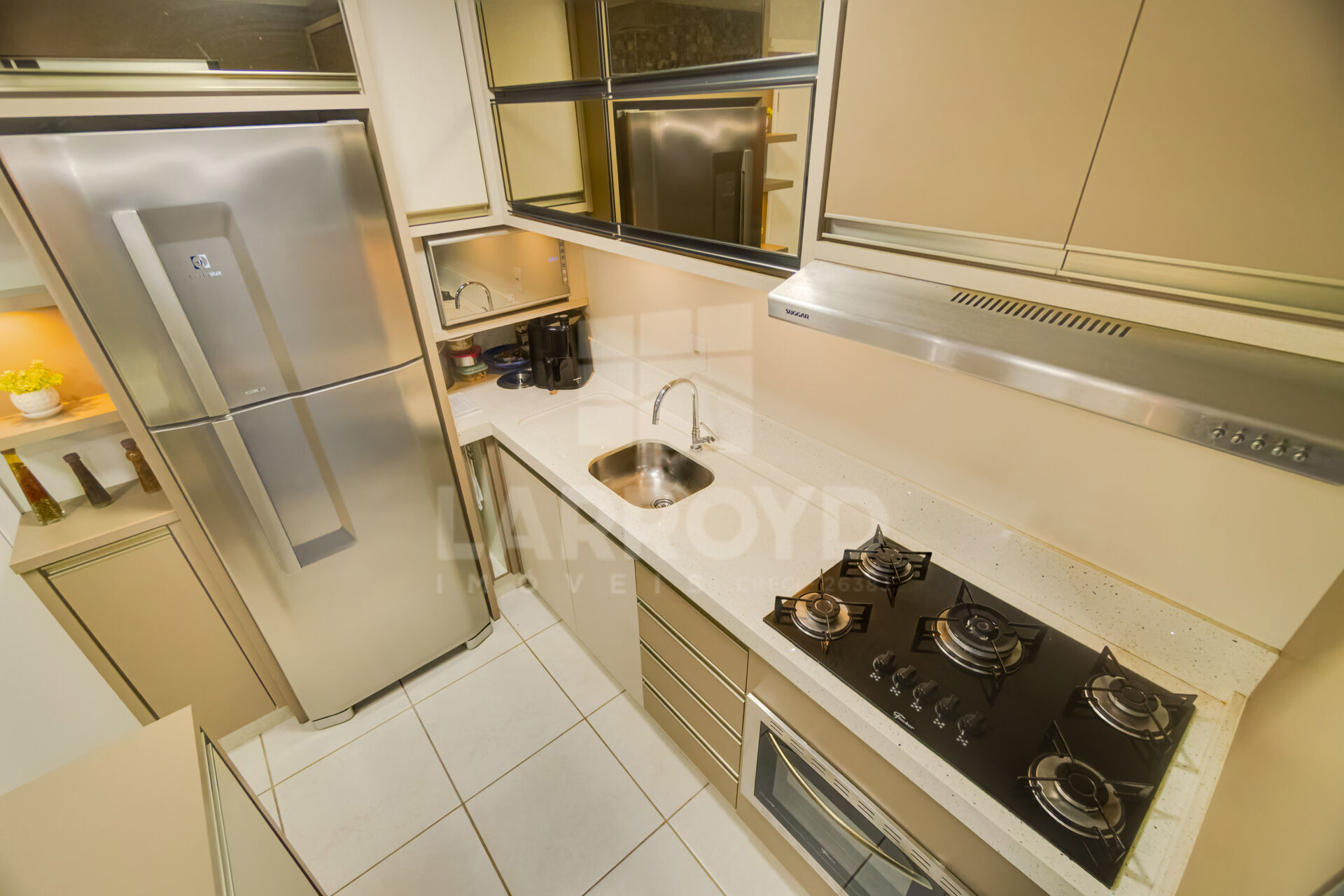 O apartamento é totalmente mobiliado e organizado para uma rotina prática, com ambientes bem definidos e boa circulação entre sala de estar e jantar. A sacada com churrasqueira amplia o uso do living, criando um espaço funcional para refeições rápidas ou encontros no fim do dia, com integração direta à área social.