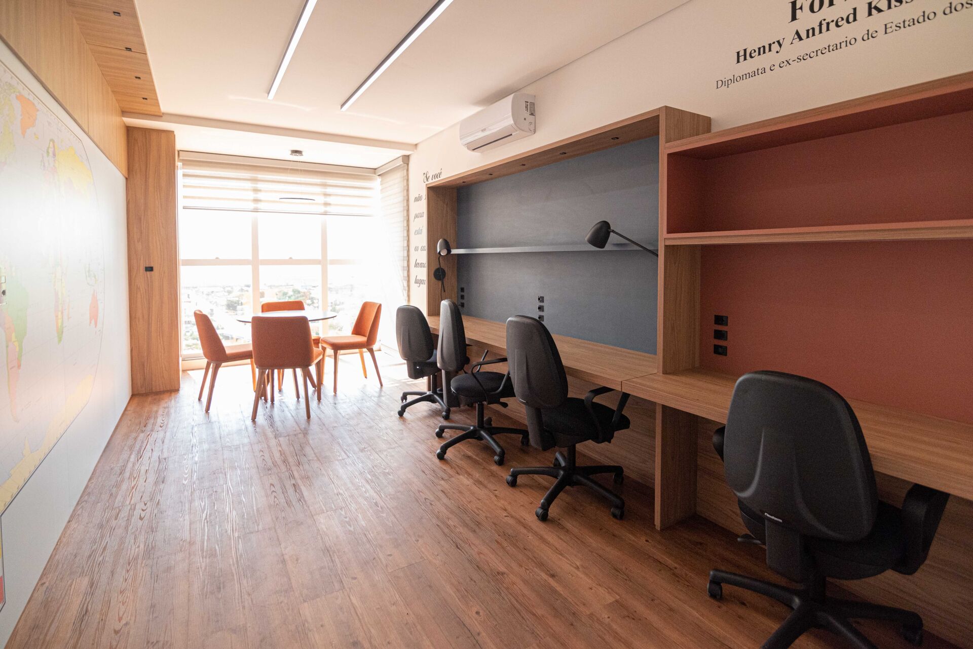 O condomínio reforça o estilo de vida: piscina na cobertura com deck e guarda-corpo em vidro, além de espaço de coworking com bancadas e estações de trabalho para quem precisa render fora de casa. A localização facilita o dia a dia e fica próximo ao Farol Shopping.