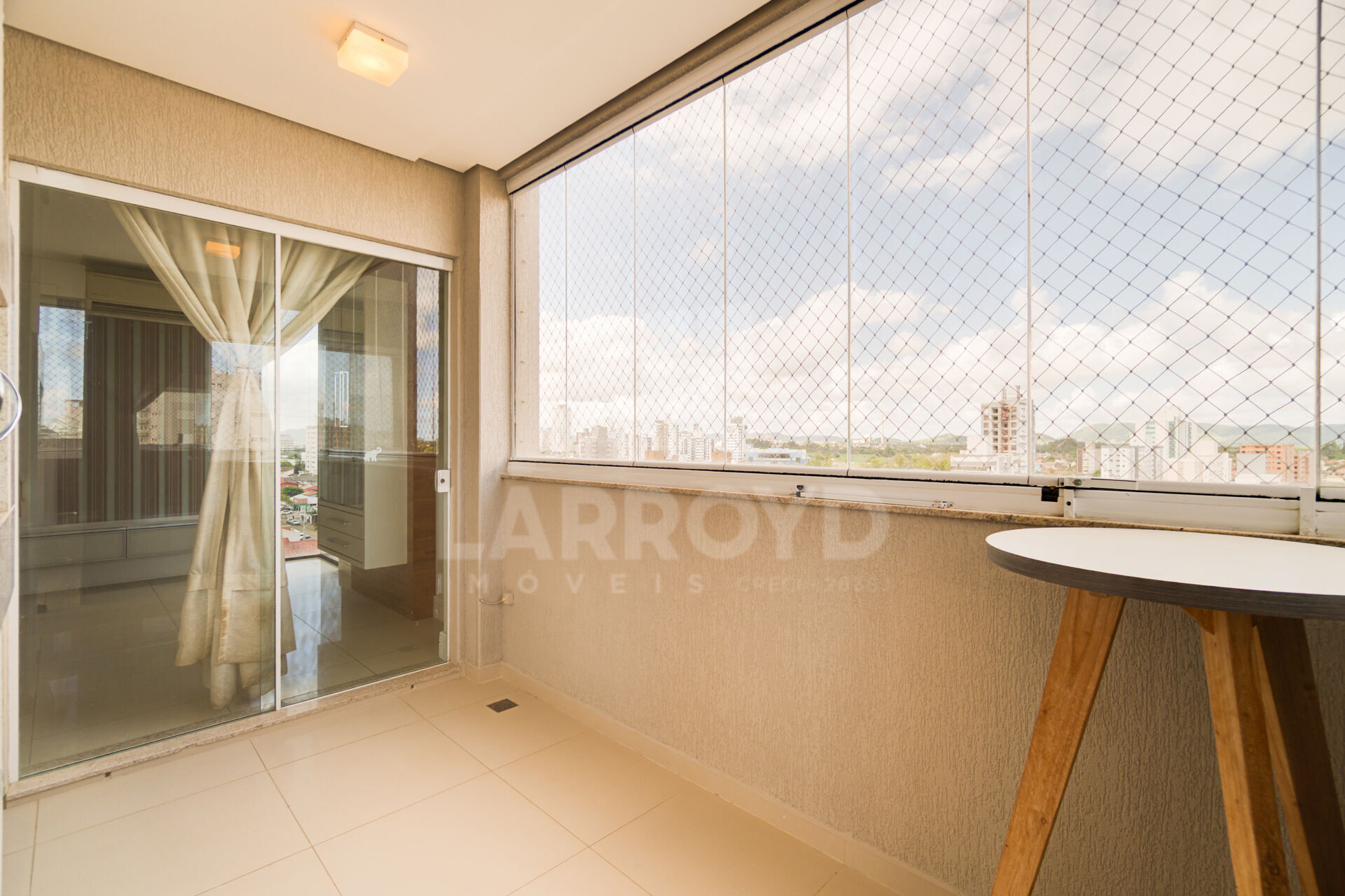 Para uma família que gosta de receber, a sacada fechada com tela de proteção e vista aberta vira o cenário do café no fim da tarde, com espaço para mesa de apoio e circulação livre entre estar e jantar. O prédio ainda oferece elevador panorâmico e áreas comuns para momentos rápidos de lazer.
