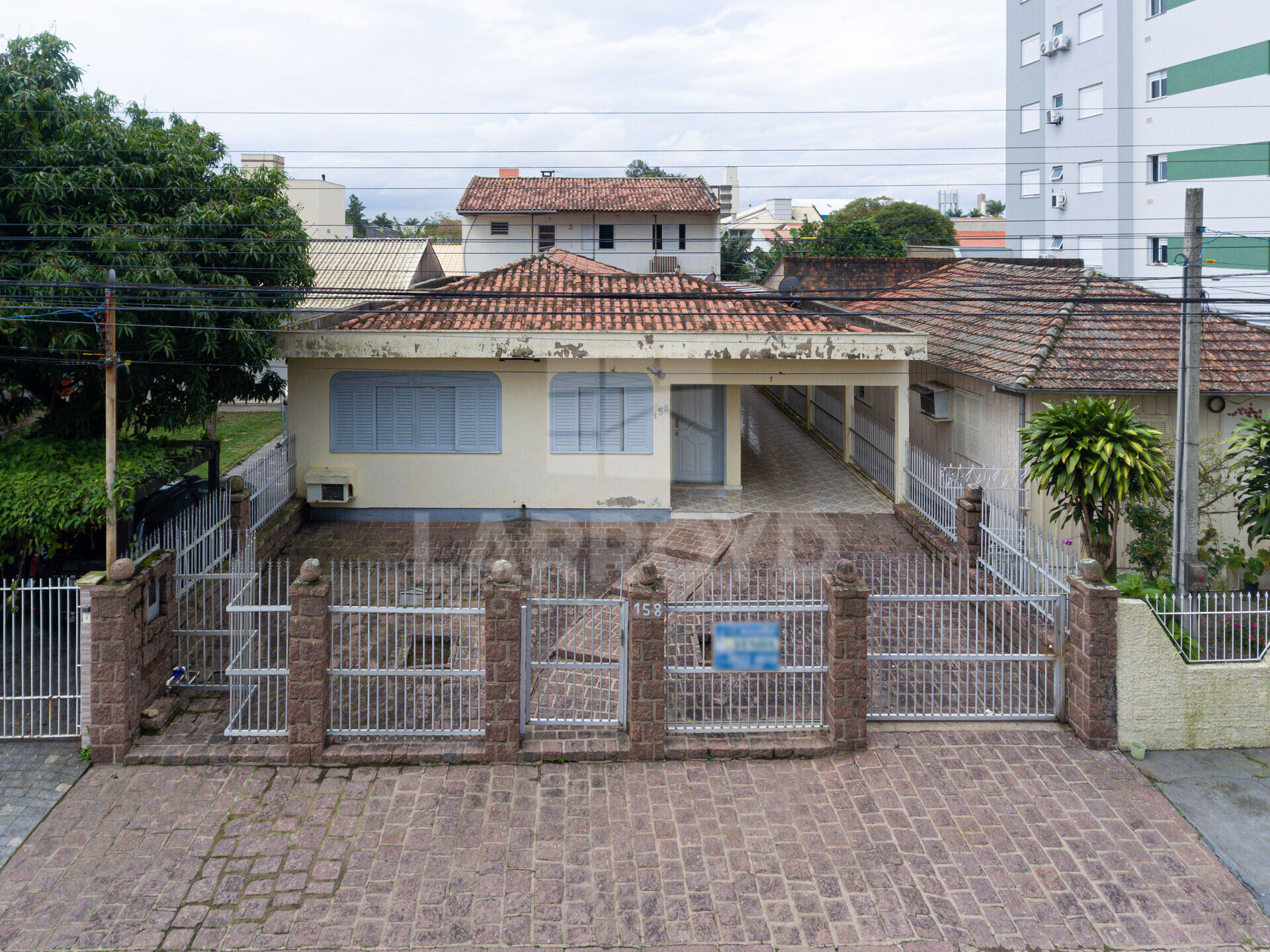 No bairro Dehon, na Rua Vigário José Poggel, 158, esta casa térrea tem fachada extensa, pátio frontal gradeado e acesso lateral coberto, com circulação prática para a rotina.