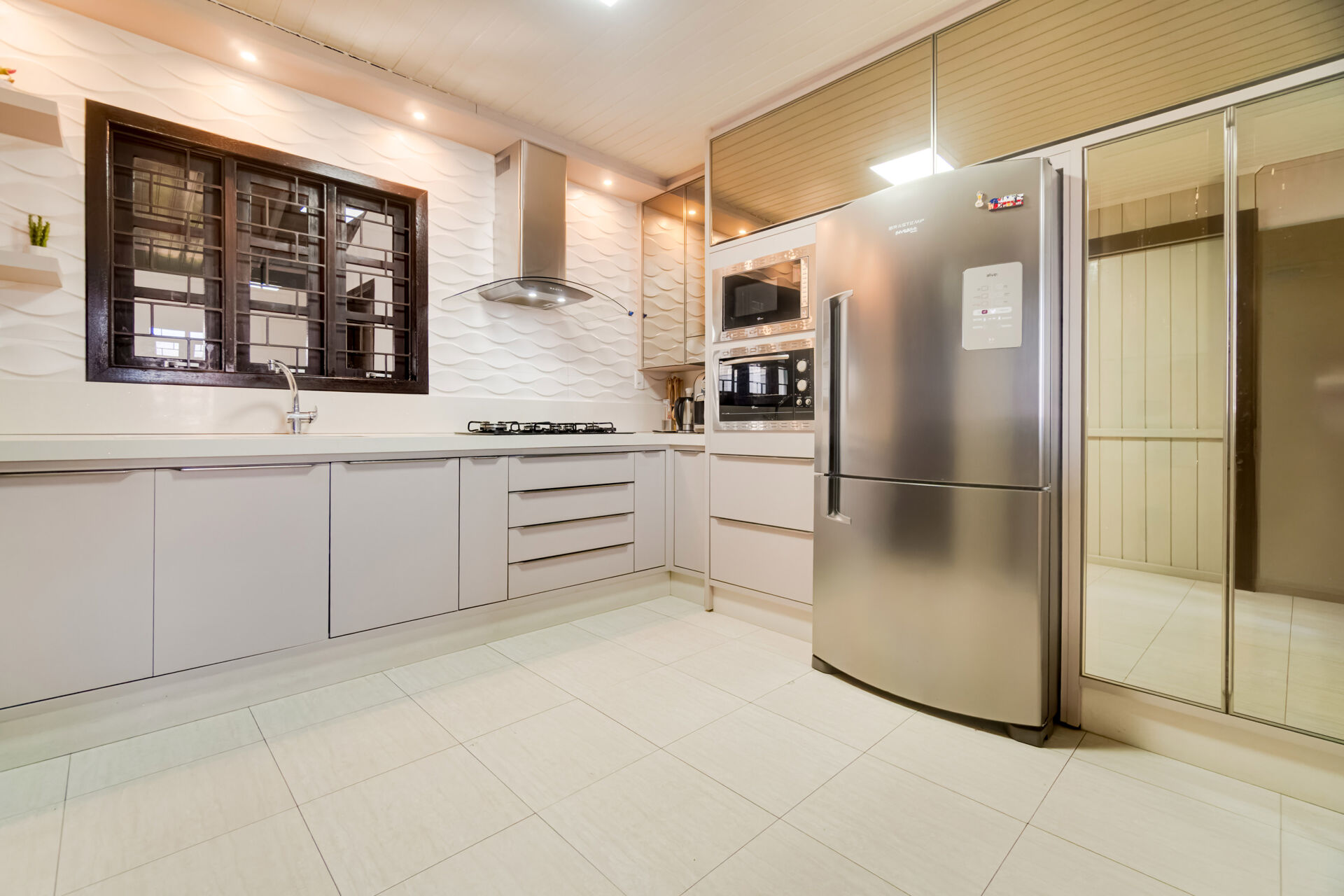O diferencial está na edícula com espaço gourmet e um escritório separado, funcionando bem para família que gosta de receber e também para profissional liberal que precisa de um ambiente de trabalho dentro de casa.