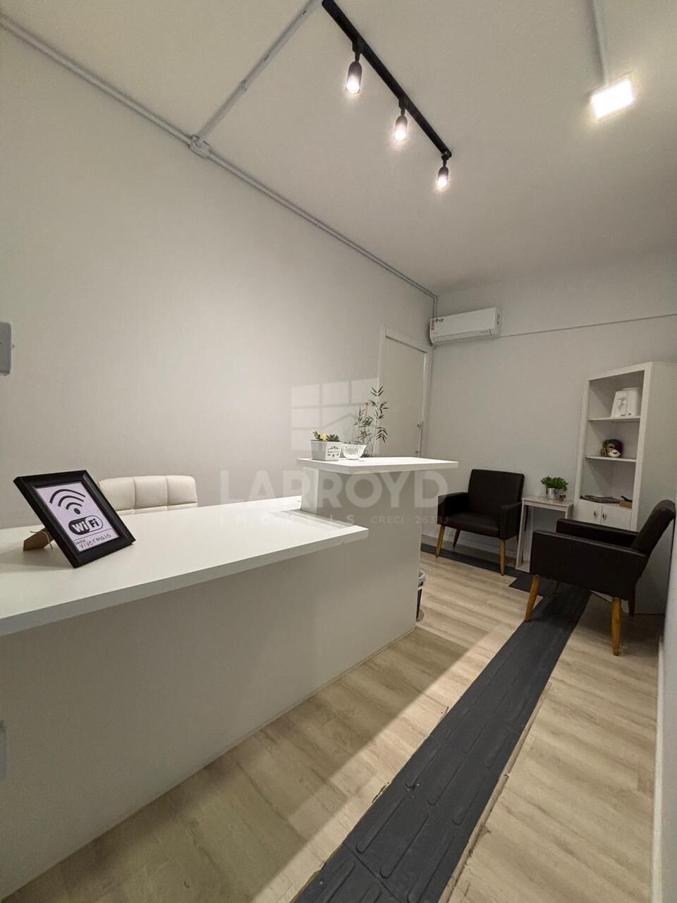Sala comercial aérea totalmente equipada em edifício de referência no Centro de Tubarão, preparada com recepção e vários ambientes de atendimento, ideal para quem precisa de estrutura profissional imediata (como consultório, clínica ou escritório). A disposição interna favorece recepção de clientes e fluxo de trabalho funcional no dia a dia.