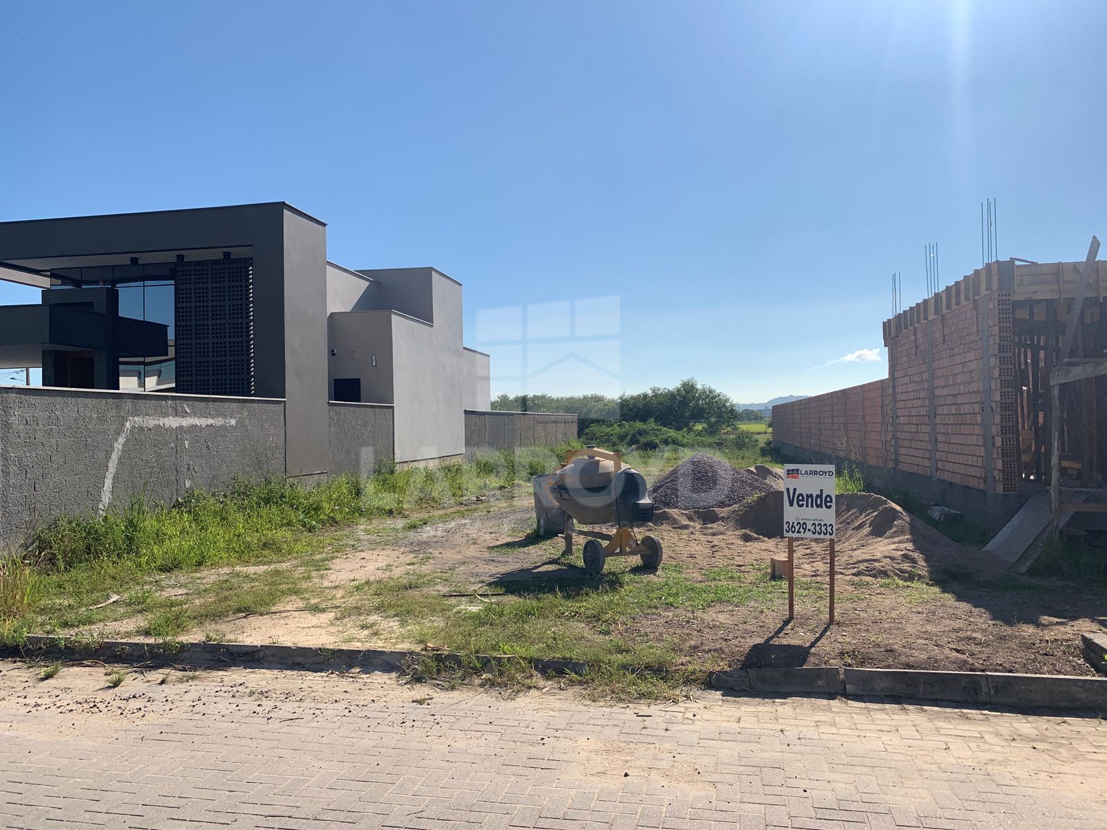 Nas imagens, o entorno mostra casas de linhas contemporâneas e obras em andamento, sinal de ocupação e evolução do loteamento, além de área aberta ao fundo que reforça a sensação de respiro. Para o investidor, é um terreno com perfil residencial/comercial em região em crescimento e com fácil acesso à cidade.