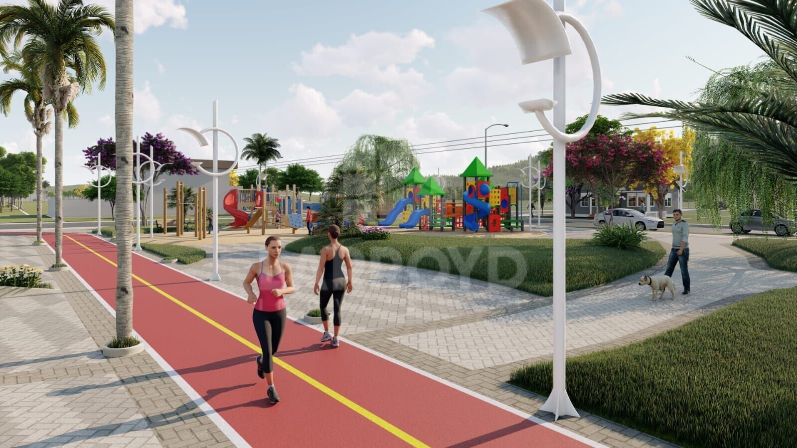 Terreno no Loteamento Silvestre I, em rua planejada e com infraestrutura pronta para o dia a dia. O projeto do loteamento inclui praça arborizada, com pista de caminhada e espaço de lazer infantil, como nas imagens ilustrativas.