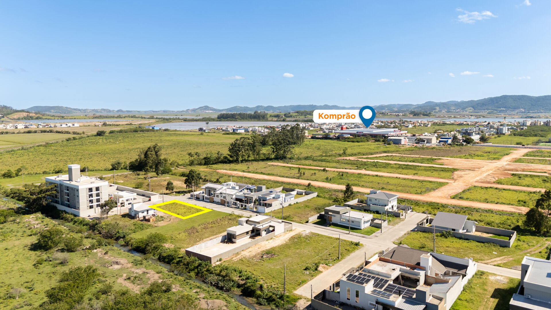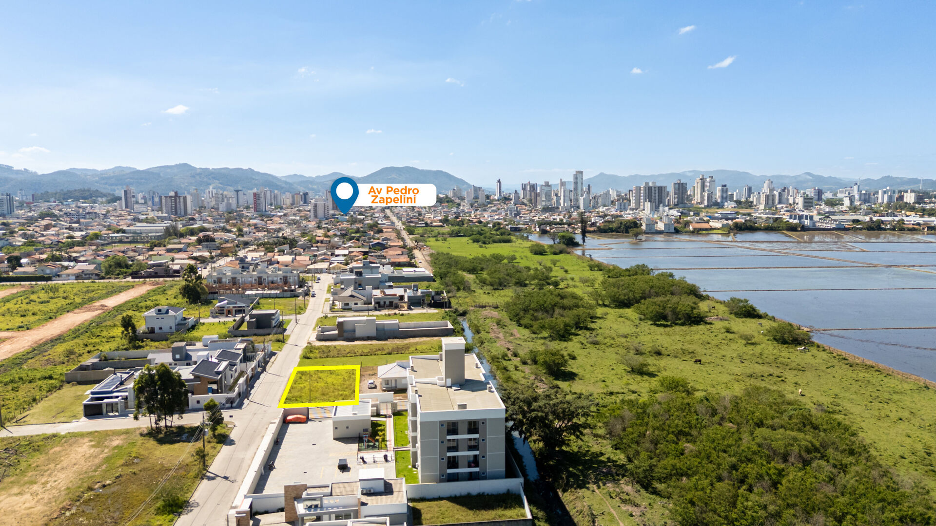 O loteamento oferece pavimentação em paver, arborização nos passeios e infraestrutura de água, energia, iluminação pública e rede coletora de esgoto, além de praça arborizada com playground — um cenário que funciona tanto para a família que quer planejar a casa do dia a dia quanto para o investidor que busca valorização em região em crescimento.